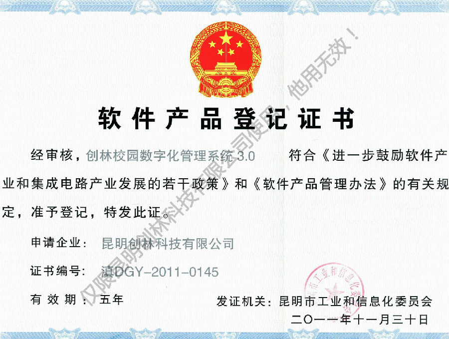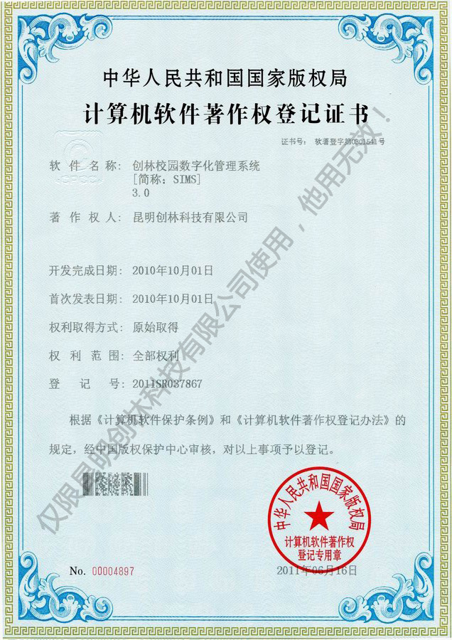 校園數(shù)字化管理系統(tǒng)軟件著作權(quán)登記證