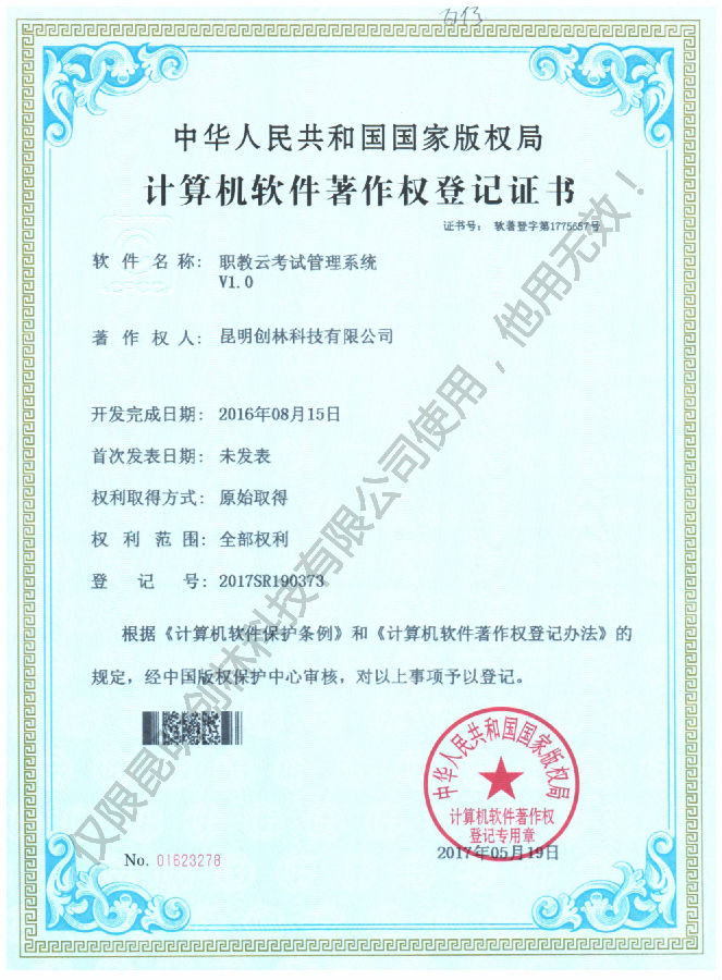 職教云在線考試管理系統(tǒng)軟件著作權(quán)登記證