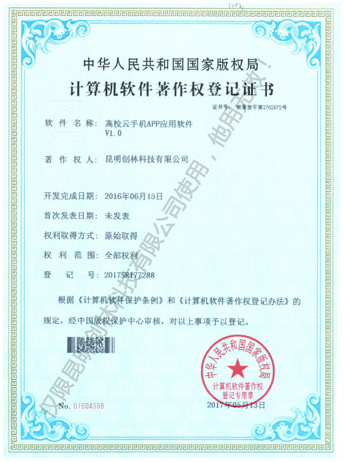 高校云手機(jī)APP應(yīng)用軟件著作權(quán)登記證