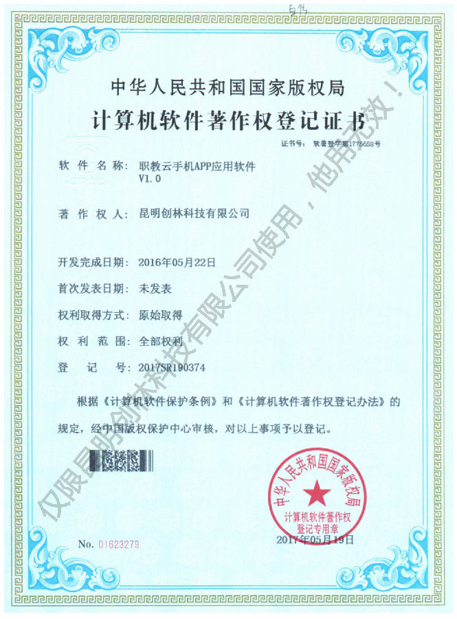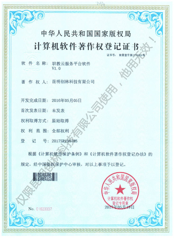 職教云服務(wù)平臺(tái)軟件著作權(quán)登記證