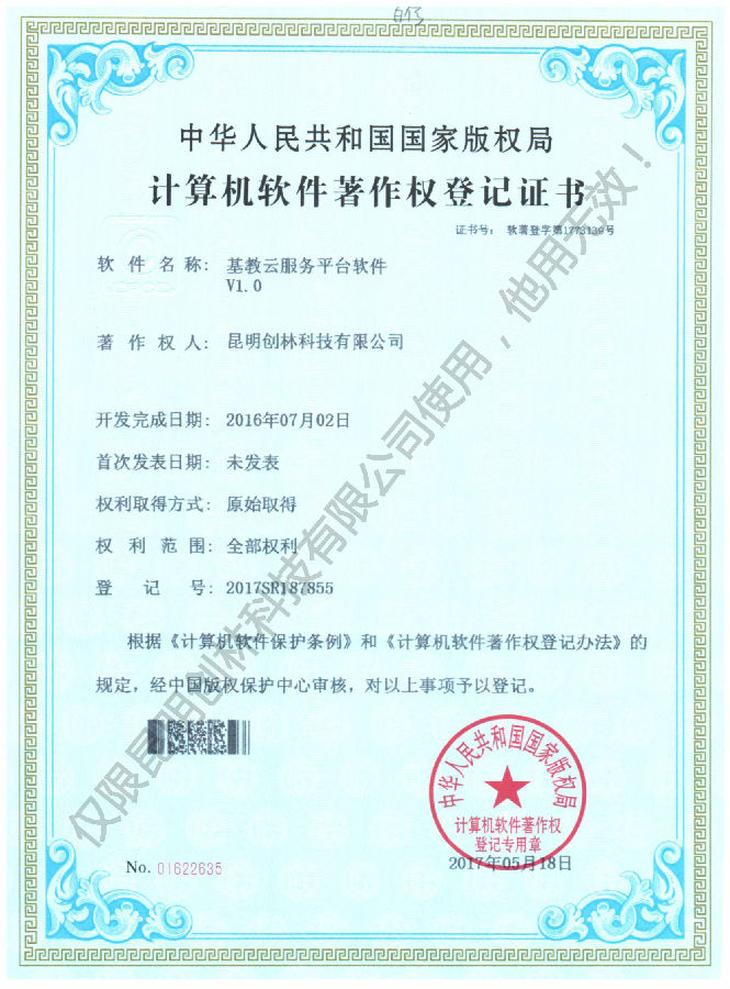 基教云服務(wù)平臺(tái)軟件著作權(quán)登記證